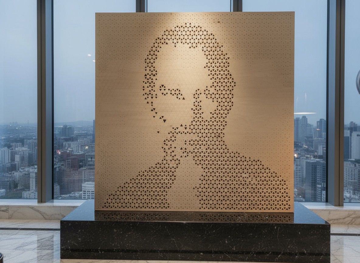 This isn’t just a portrait panel—it’s a tech-tribute that hacks tradition with a thousand geometric cuts. The icon emerges in sharp relief, every triangle a pixel punched through engineered wood, then spiked with glowing resin for that electric after-dark reveal. It’s legacy, coded in light.