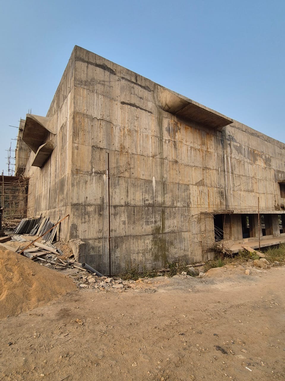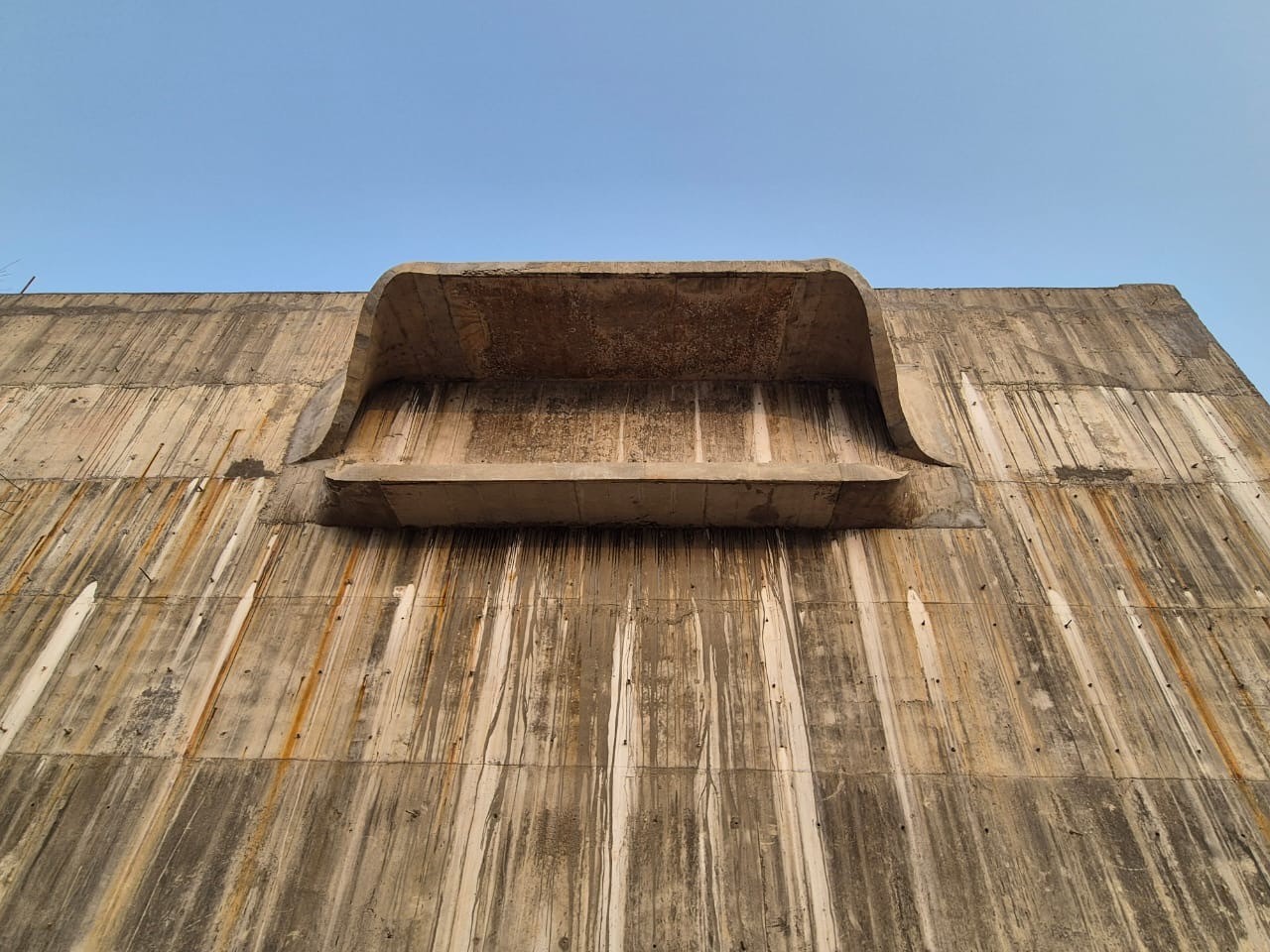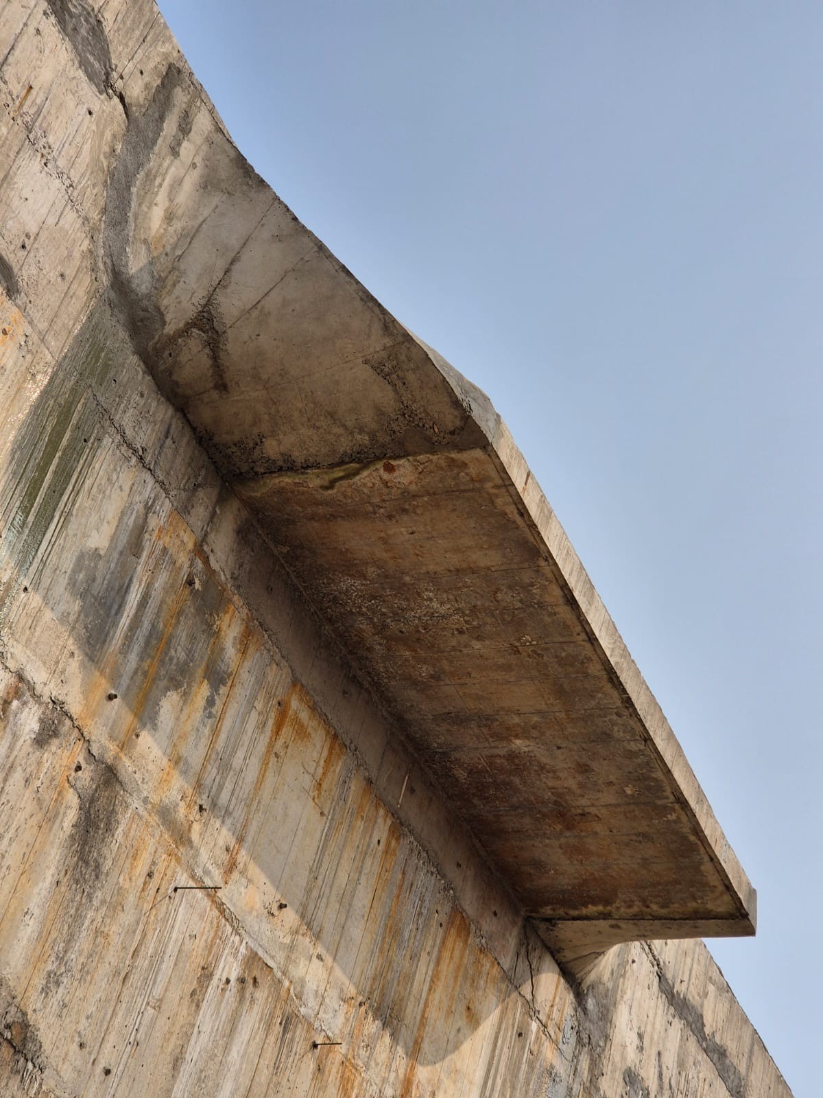 This exposed concrete doubly-curved facade isn’t your everyday wall—it’s a brutalist experiment mid-birth. Every streak and seam is a badge from the frontlines of R&D: material tests, custom formwork headaches, and the defiance of gravity in a single monolithic pour. The cantilevered slab explodes out from the rigid shell, a raw testament to just how far casting concrete can be pushed when the ambition is as thick as the mix. Unfinished? More like unfiltered proof that innovation leaves marks.